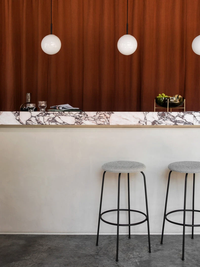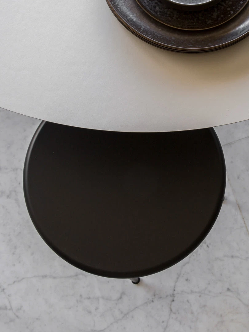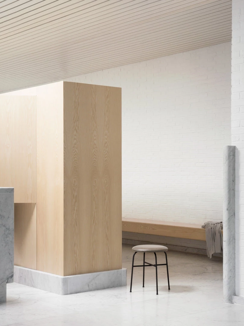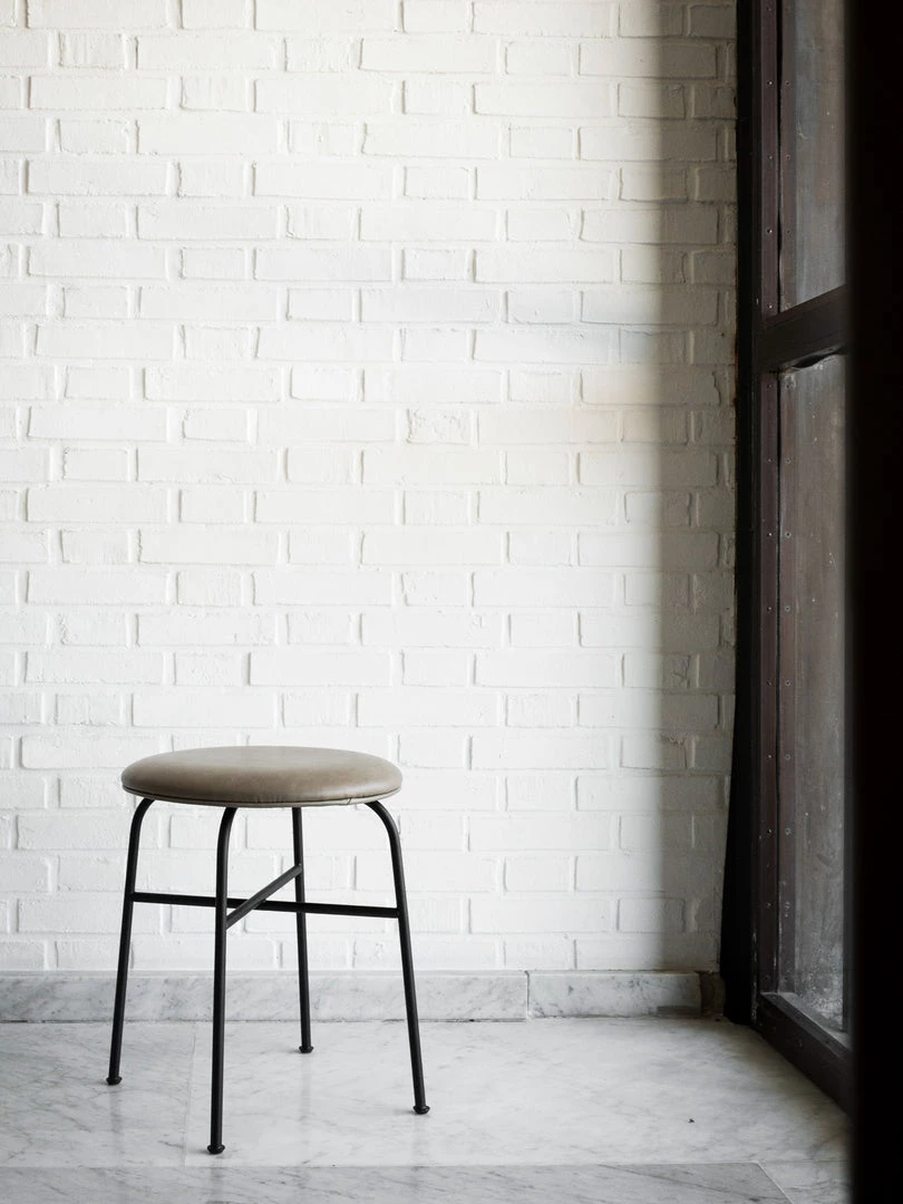 Upholstered and bar-level versions followed. The newly-released Afteroom Stool takes the series a step further, to a place of ultimate minimalism and easy comfort. With clean lines and a sturdy base, the Afteroom Stool is as much at home pulled up to the window of a coffee shop as it is around the dinner table.