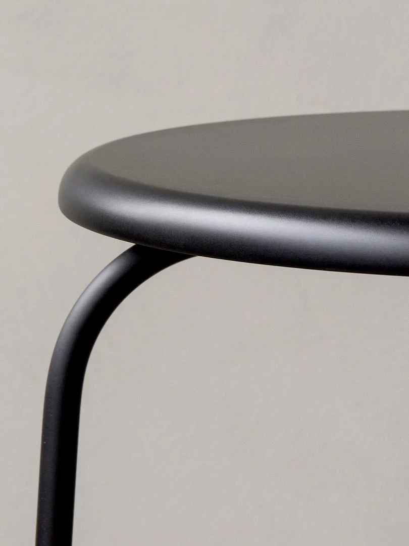 The Afteroom Stool is rendered in black powder coated steel and comes with or without an upholstered seat. The stool is available in three heights—stool, counter stool, and bar stool—making it easy to slide up against a bar or keep in the home as small-space or additional seating. In keeping with the original Afteroom chair series, this extension of the hugely popular line is bound to be embraced by those looking to enhance the seating in their commercial or residential spaces.