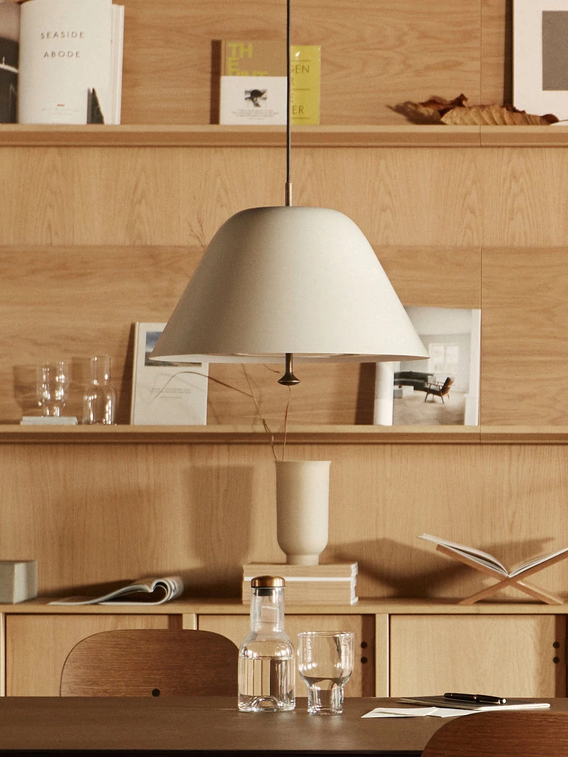 As its name suggests, the Levitate Pendant floats effortlessly on air. The generous aluminium shade with an elegant glass diffuser, classic in its expression, is available in two sizes and three colours and reflects warm, ambient light to perfectly illuminate a space. The accompanying brass knob makes for a perfect decoration.