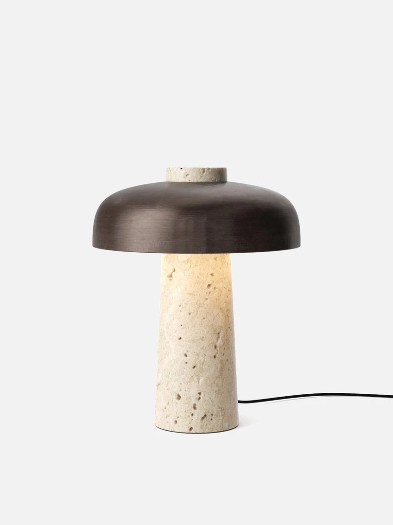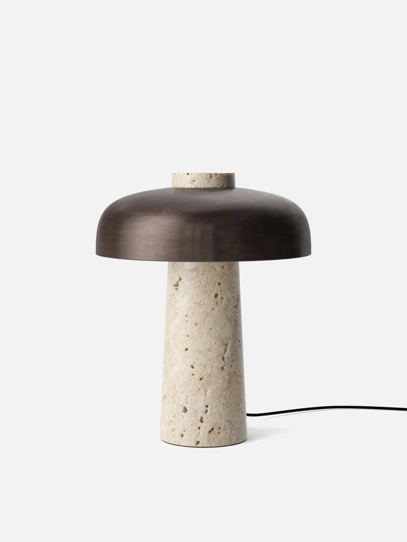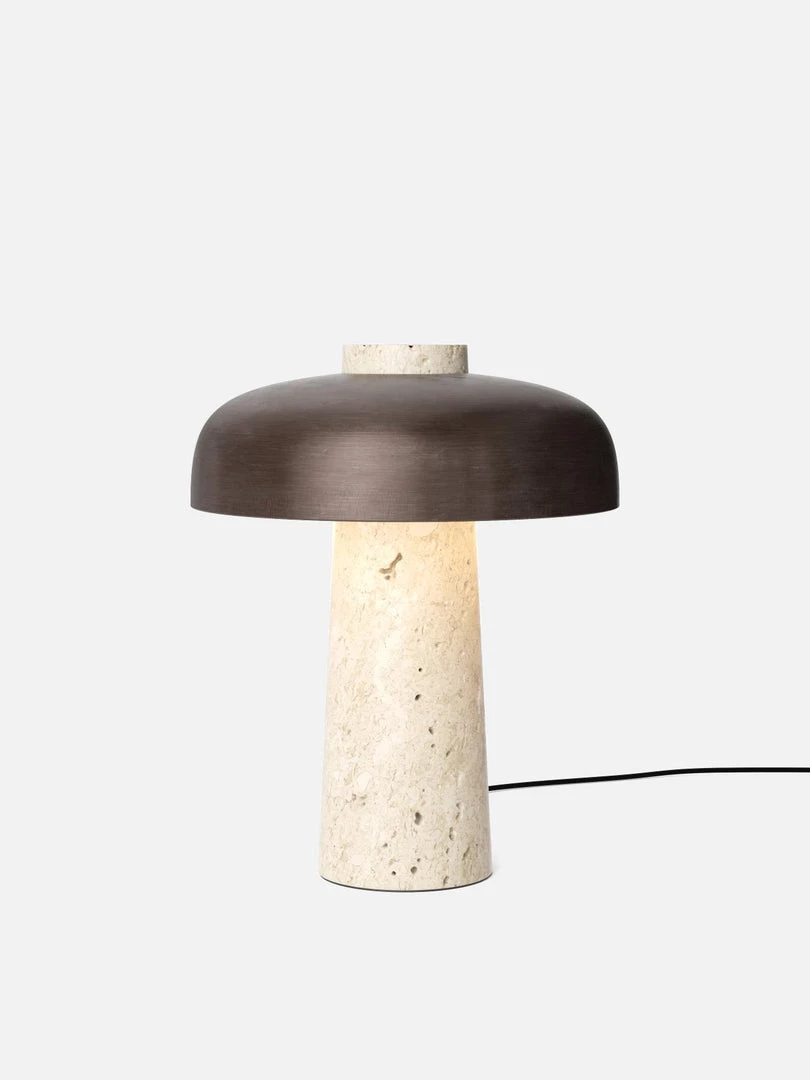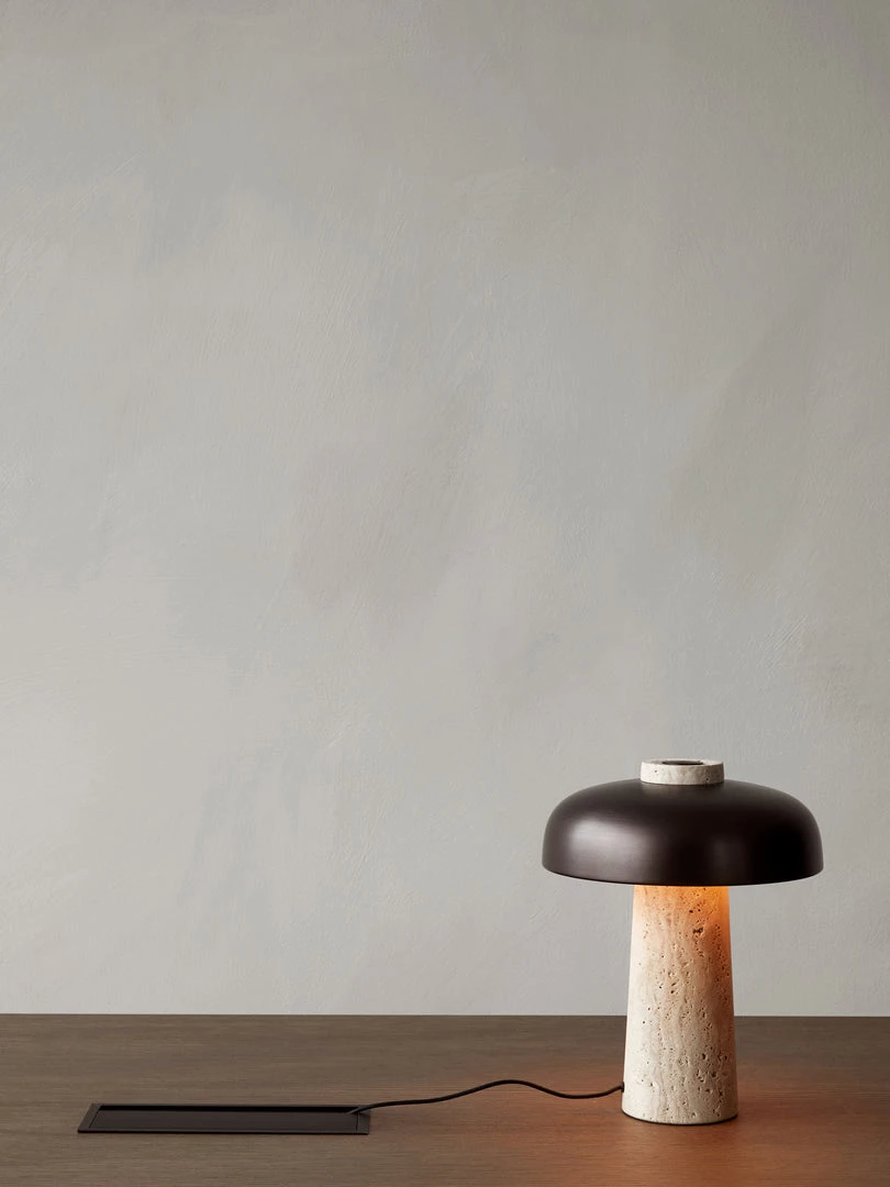 MENU presents Reverse Lamp, a new lighting solution that underpins the ever-present beauty of natural materials. In his search for simple and clever solutions in any given space, Danish designer Aleksandar Lazic looked to Italian marble tables from the 1970s when creating the Reverse Lamp. Inspired by the play on structure created by geometric constraints, the conical travertine base and curved, bronzed aluminium shade define the lamp’s perfectly balanced expression.