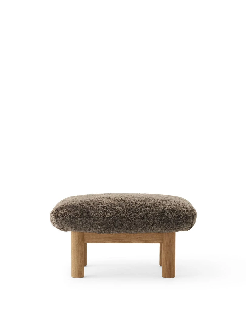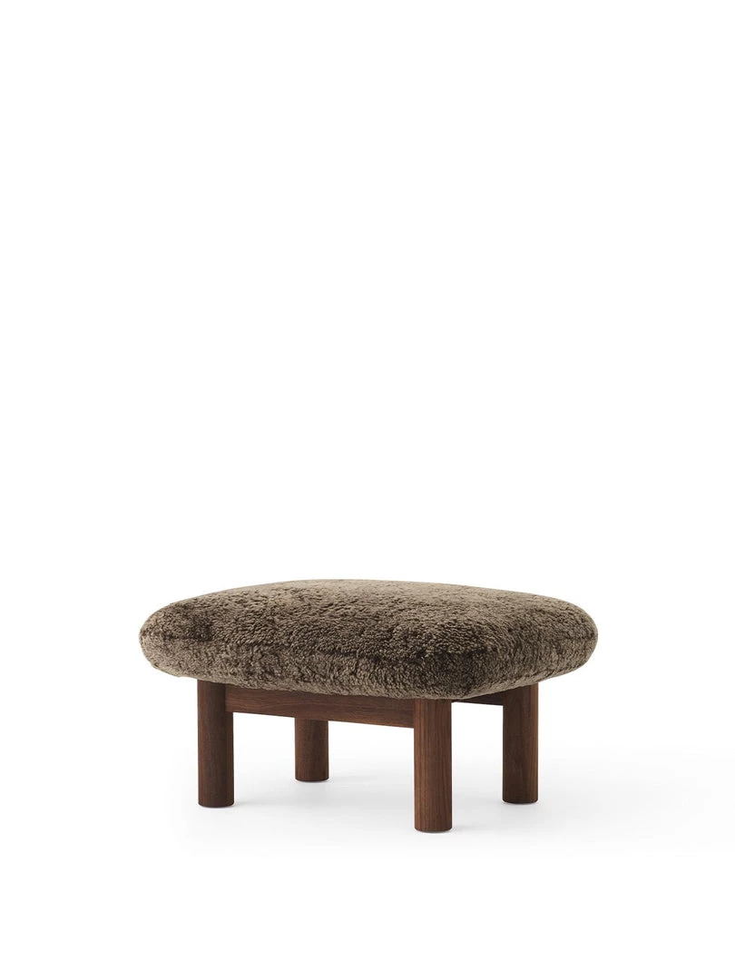 - Lounge chair and ottoman: Solid oak of choice or walnut, foam, and sheepskin