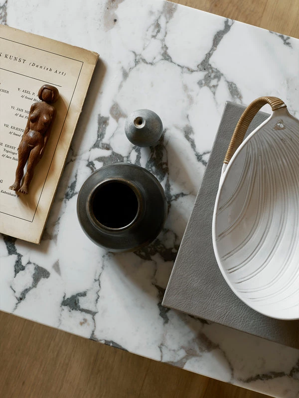 Imagined by Norwegian architect and designer Danielle Siggerud for MENU’s former showroom café, the Androgyne Collection profiles simple silhouettes and refined materials. A monumental design crafted from kunis breccia stone, marked by characteristic veins and mineral fragments in warm hues, the Androgyne Lounge Table continues the simple silhouette of the collection while introducing natural materials and a shape and function made for everyday settings. The versatile design makes it possible to use as both a lounge table or bench for piles of books or statement decorations.