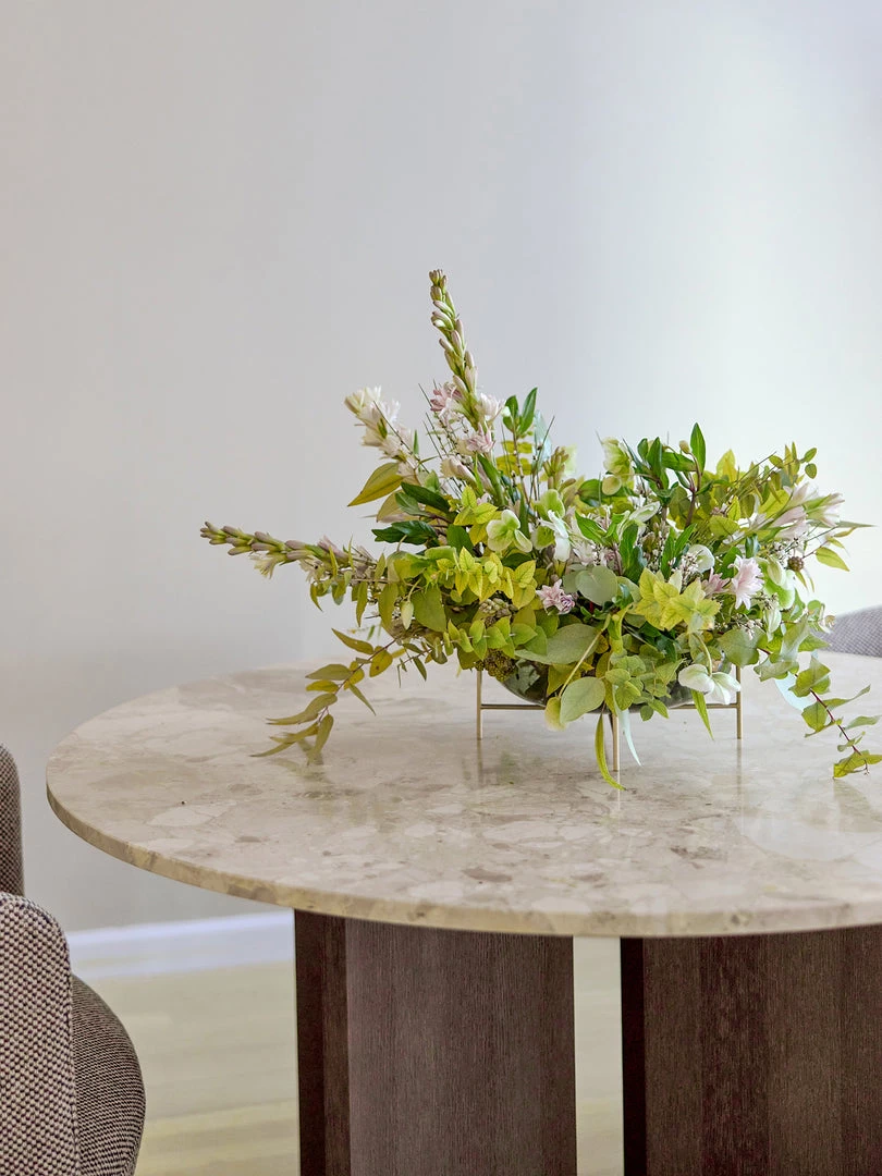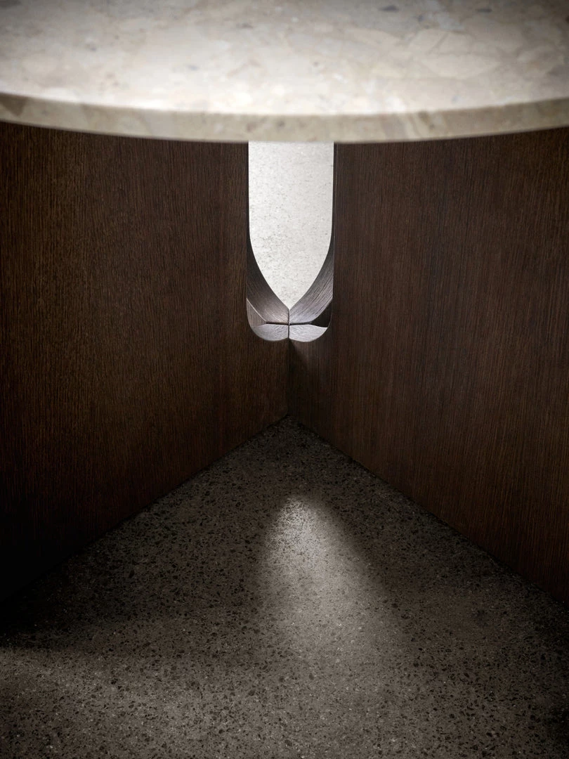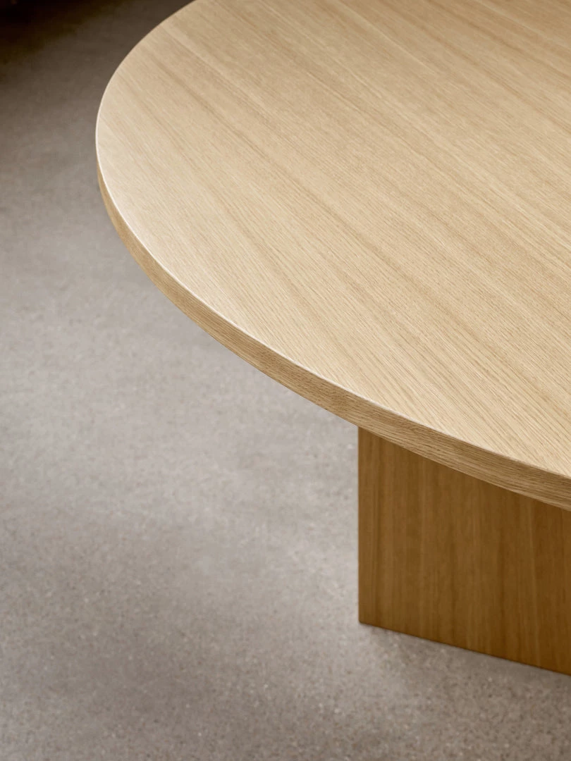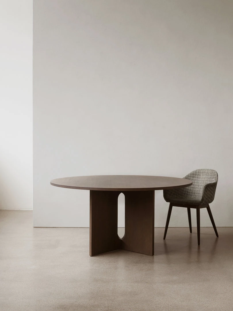 MENU’s Androgyne Collection is distinguished by its playful, yet elegant silhouette and considered combination of natural materials. The invention of the Copenhagen-based Norwegian architect and designer Danielle Siggerud, its blend of the masculine and feminine, true androgyny, is what lends the collection its name. Like a magnificent monument, the new Androgyne Dining Table pairs oak and stone to striking effect. The bold and confident take on a dining table amplifies the silhouette of the collection’s popular side table to grander proportions thanks to an elegant oak base, available in natural or dark stained, and a table top in corresponding wood or kunis breccia, an artistic blend of stones in warm tones that create subtle texture and add a new dimension to the design. A table not for the faint of heart, it makes a characterful accent in any space, from a domestic dining room to a modern restaurant or office gathering point, and serves multiple functions to bring a timeless quality to the design.