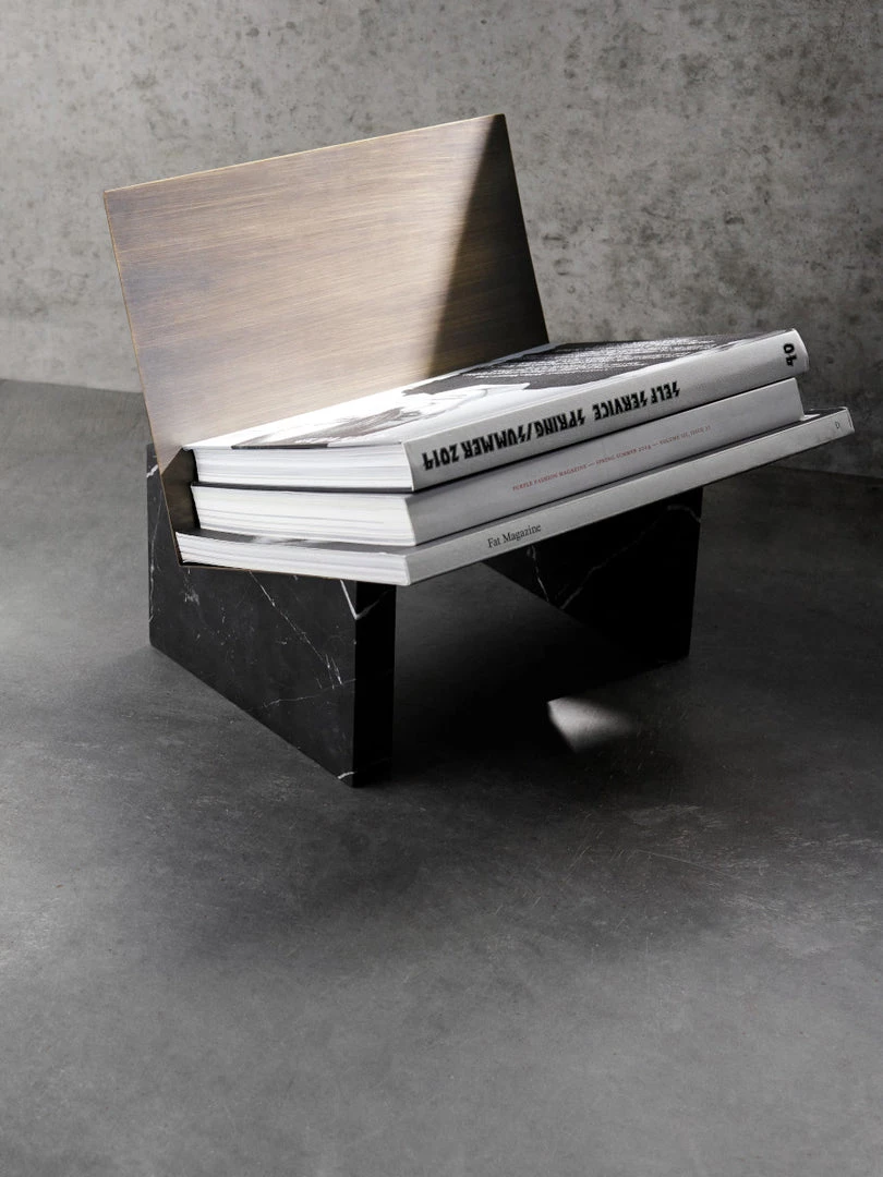 The magazines we buy and the books we read tell the world about our taste. Let yours speak volumes. The sleek, sharply designed Monuments Magazine Holder puts our reading habits and intellectual curiosities on display as artwork. Its plinth-like base of two identical blocks of marble imbues the holder with a monumental, architectural feel. The project aims to elevate the magazine holder, a piece of furniture that rarely receives the aesthetic attention it deserves.