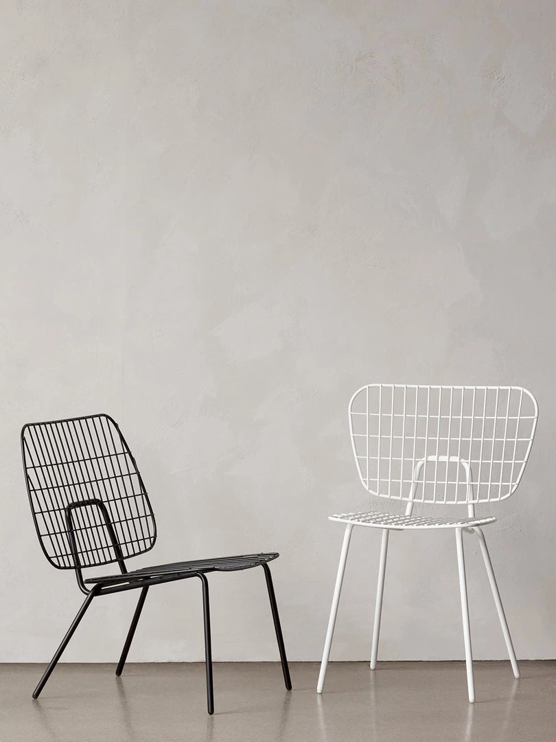 Guided by all senses, their mission is to create seemingly simple designs that reflect the love that is put into them – and their details – for years to come. Their Wire design is available as a Dining chair and a low Lounge Chair. They both have the same light and airy appearance and the thin structure of the wire frame gives them a delicate feel, while also providing a fine contrast to any cushion you put on the dining chair – or the blankets, pillows and soft items you lay in the lounge version.