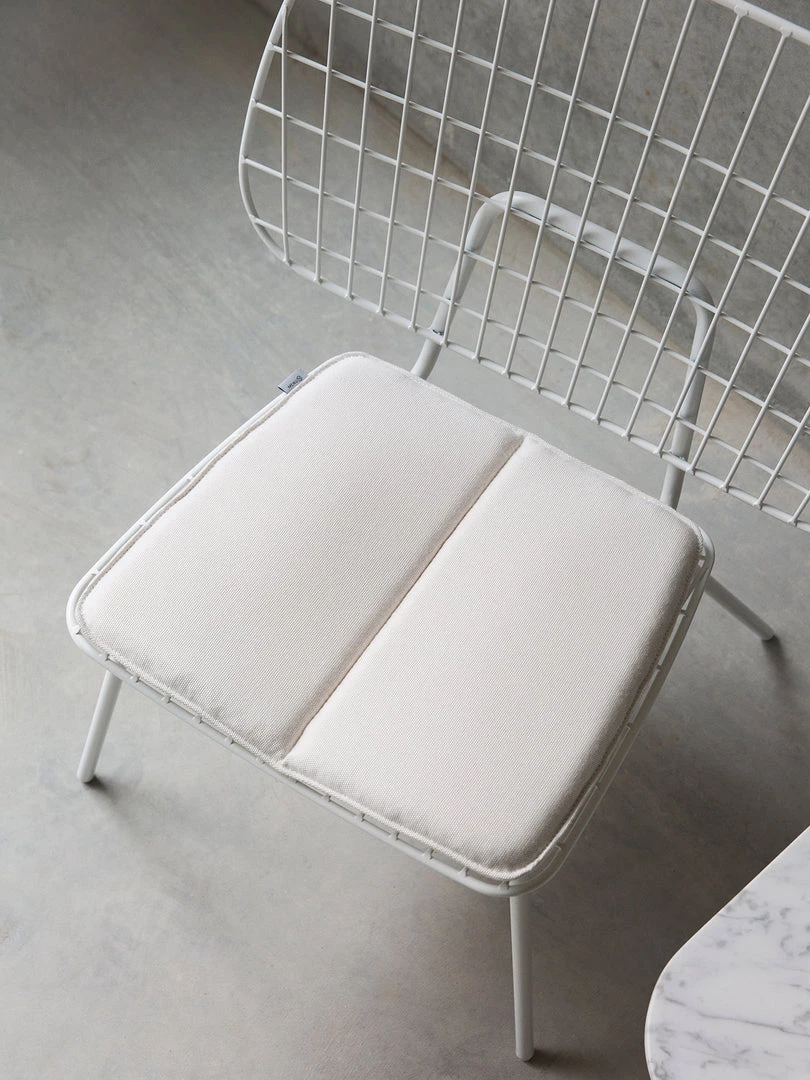 Studio WM explains, “The strength of metal gave us the freedom to push the boundaries and seek for the thinnest, most light construction to bring light into the design in a literal and figurative sense. The contrast between the thin metal wire and soft pillow evokes the urge to touch and use the product.” The WM Chairs are very durable and suitable for both indoor and outdoor use.