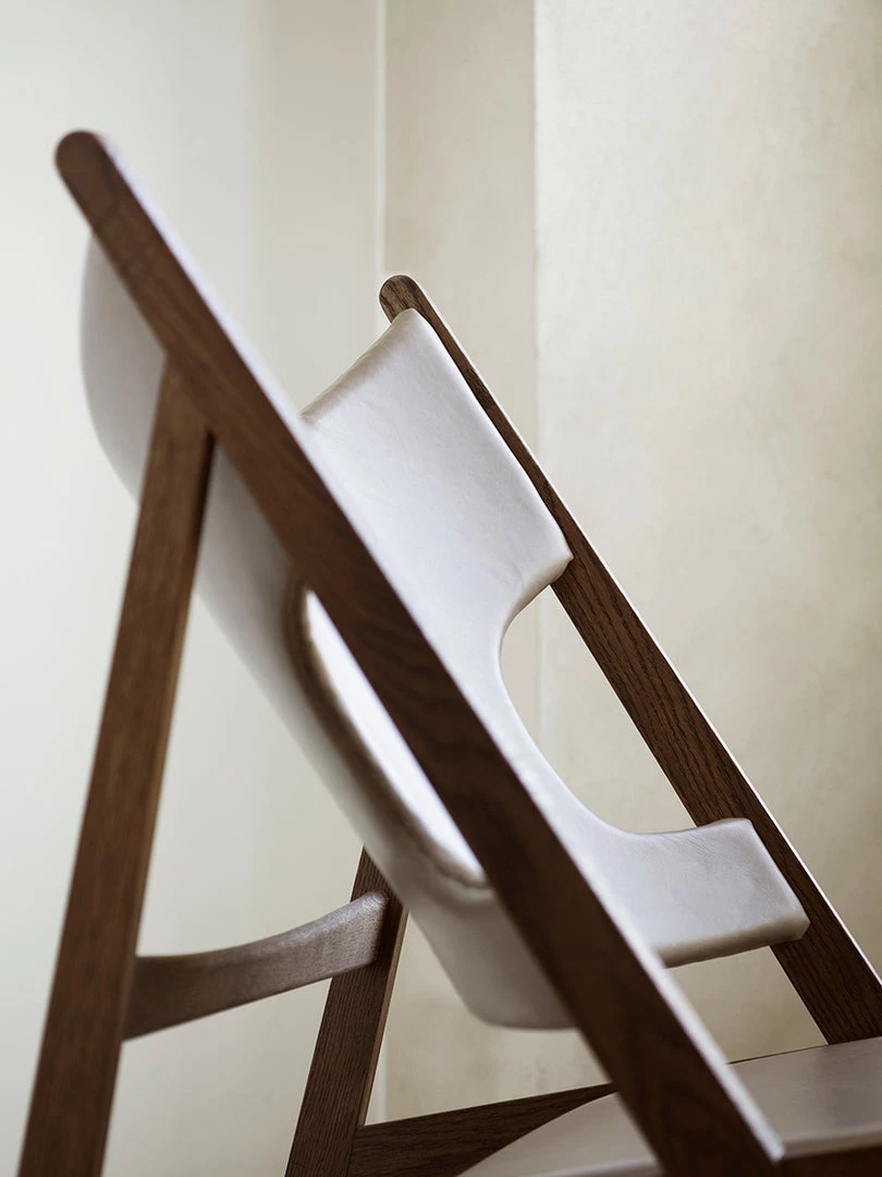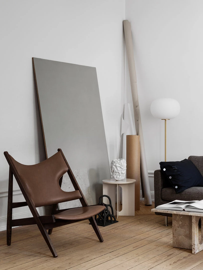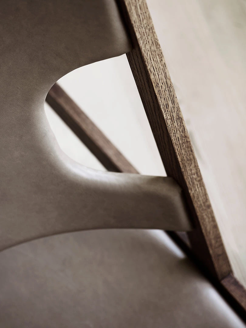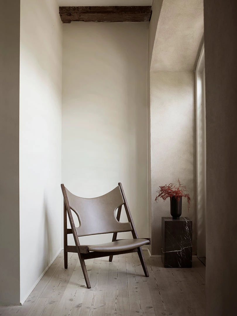 The Knitting Chair is beautiful from every angle, making it easy to place anywhere in a room. Given the chair’s enveloping comfort, it has a relatively small footprint, which makes it an easy fit in compact interiors as well as in more spacious ones. The design also stands out on comfort, the result of Kofod-Larsen’s constant care to ensure ideal angles and lumbar support. The clean, sculptural lines, achieved through the designer’s close work with joiners, and the high-end, natural materials make for an unforgettable, conversation-sparking silhouette.