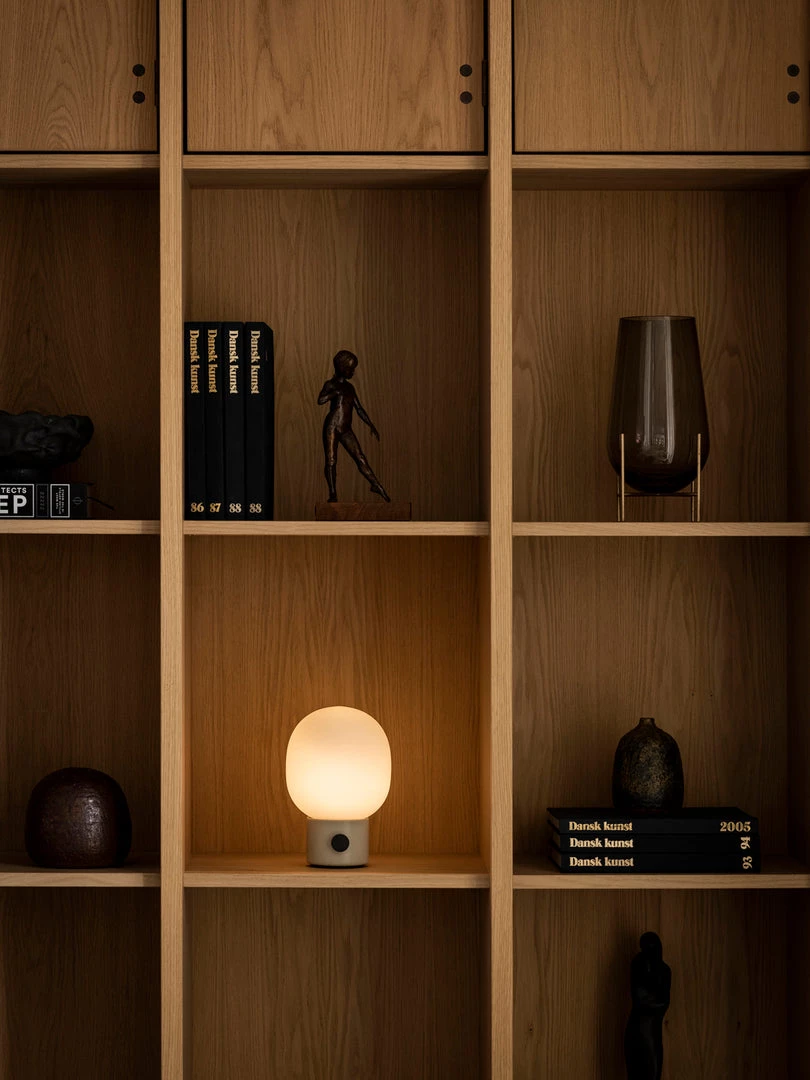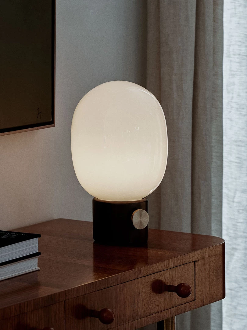 The popular JWDA series is updated with the addition of the classic lighting design in a cordless version. The JWDA Collection brings warmth and a poetic profile to any room with its considered combination of materials and tech infused functionality. Inspired by traditional oil lamps and imagined with a modern yet timeless look, the JWDA Portable has the freedom and flexibility to move anywhere you want. The small-scale design has the same elliptical glass shade as its predecessors, resting on a solid metal base with a brass dimmer switch to control the ambience. Fitted with a concealed USB-charger at the base, the diminutive design provides 10 hours of adjustable light when fully charged.