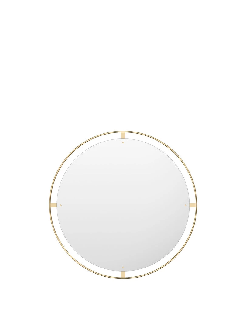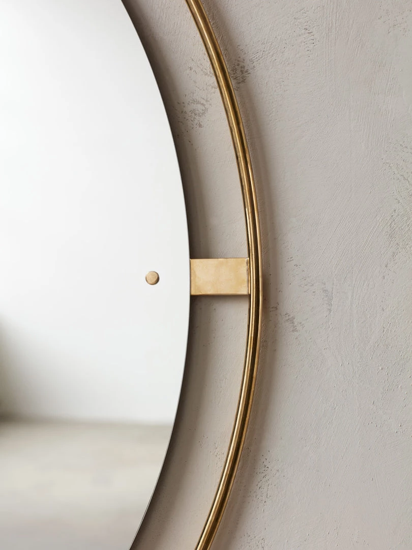 Surrounded with a bronzed or polished solid brass frame, held in place with decorative screws, the Nimbus mirror measures 110 cm in diameter, making it ideal as a functional object, as well as a decorative addition to homes, hotels or offices.
