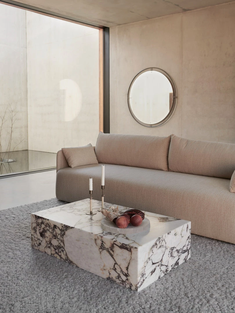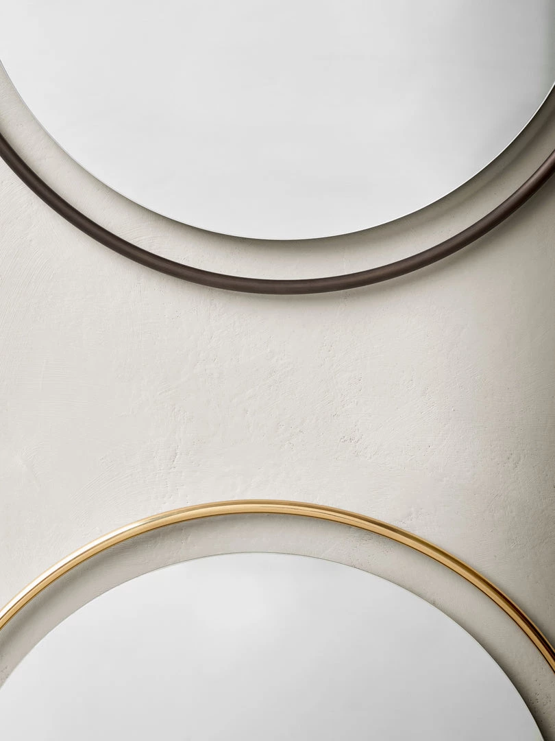 A mirror isn’t merely purely functional: since ancient times, they have reflected the style of a period, framed by ornate Baroque flourishes or Gothic arches and the simple lines of the Bauhaus movement. MENU’s latest iteration takes the fundamentals of the mirror into the modern age, yet with a mythological twist, referenced in its name: in Greek mythology Nimbus was a shining cloud or corona that often surrounded a deity when on Earth. Design studio Krøyer-Sætter-Lassen looked to the way in which a painting or picture is framed to change the overall expression of the artwork. Encompassed by a halo-like bronzed or polished brass ring, held in place by decorative screws, the circular mirror adds to the sense of light and space in a room.