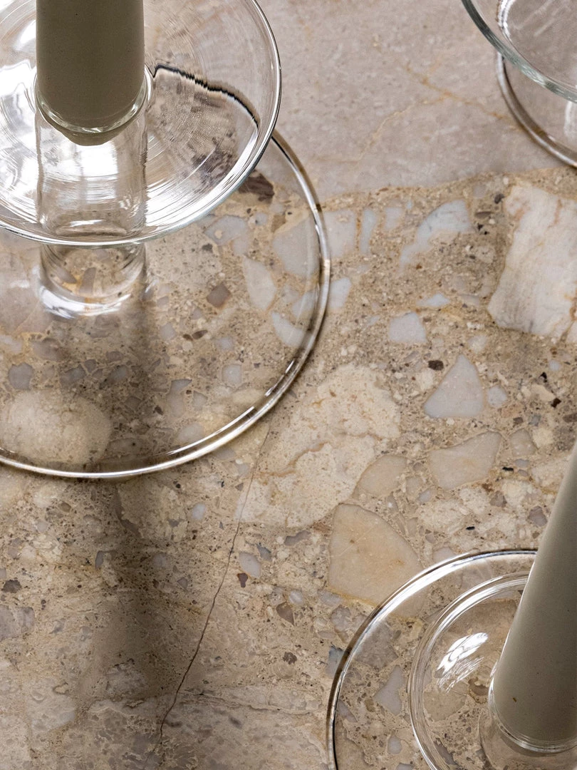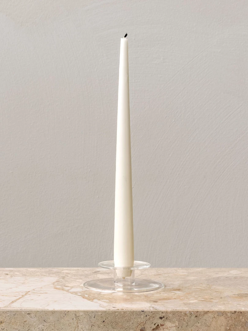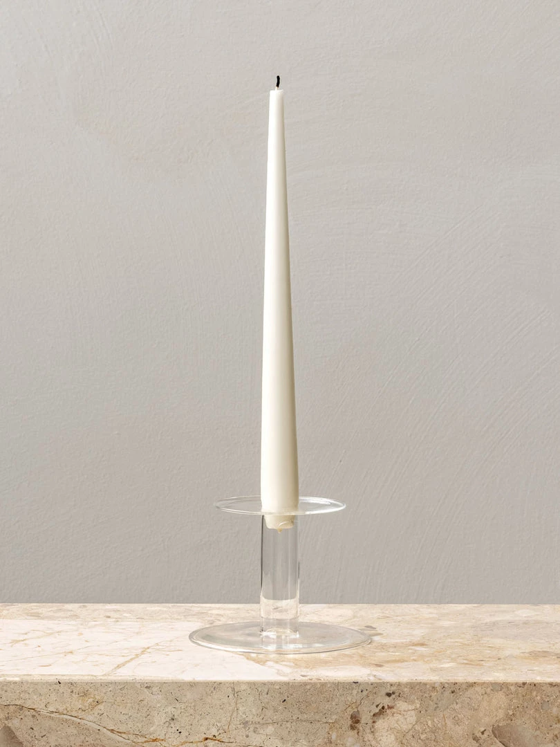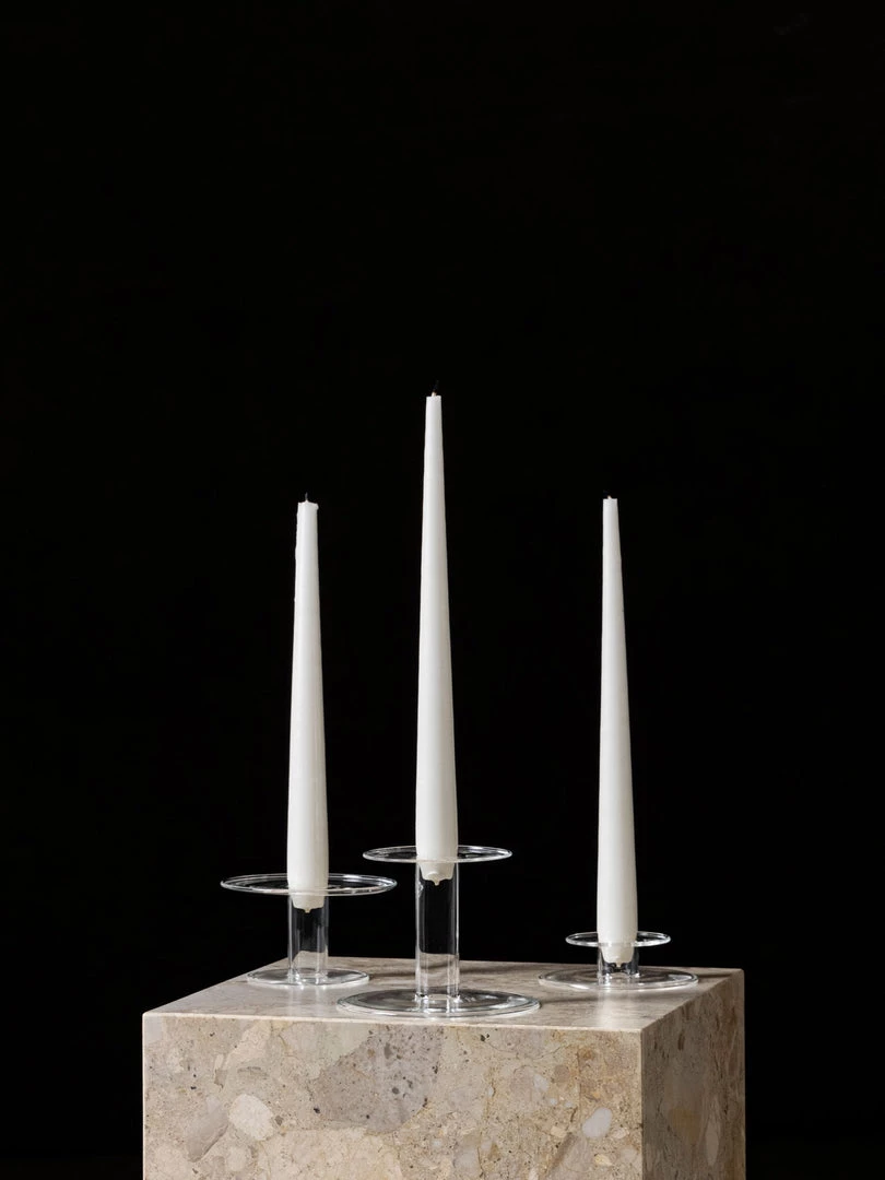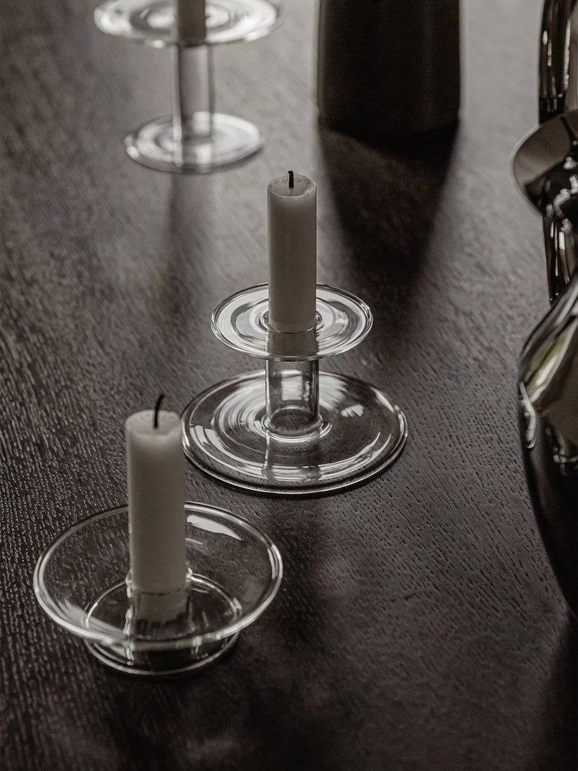 Elegant in its simplicity, the Abacus Candle Holder in reflective borosilicate glass elevates candlelight to new heights. For use alone or clustered in multiples, the strong silhouette ensures soft, flickering light illuminates spaces beautifully.