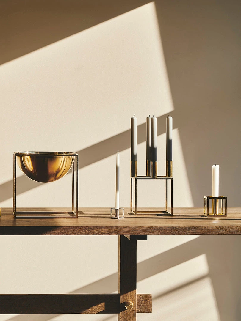 With a sharp sense of contemporary Functionalist style, Mogens Lassen designed the iconic Kubus candleholder in 1962, a piece once reserved solely for family and close architect colleagues. The Kubus is still crafted in Denmark, and among architects and design connoisseurs it has acheived the status of a modern international design icon. The story about Kubus 1: Architect Mogens Lassen was commissioned to design the interior for a restaurant in North Zealand, Denmark, and it was within the context of this assignment that the Kubus 1 was born. The square-shaped Kubus 1 gathered people around the table just as Mogens intended, and its characteristic shape and simple light created an atmosphere of coziness throughout the entire restaurant. The Kubus 1 still decorates tables in the very same restaurant, because good design lives on for generations.