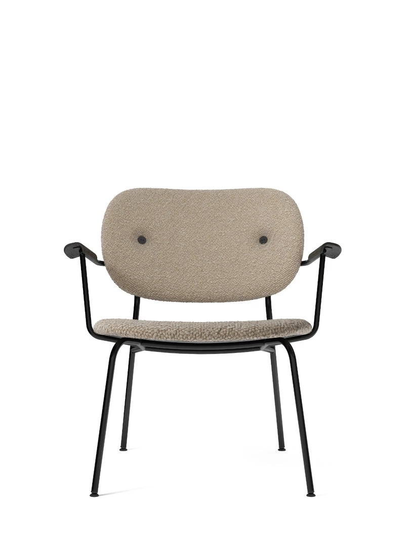 Co Lounge Chair is a new and lightweight lounger with exceptional sitting comfort. Inspired by classic designs that combine metalwork and woodwork to iconic effect, the new iteration purposefully re-spaces its different components to create a lighter, more laid-back look than its dining predecessor. The comfortable design enhances interior spaces rather than demanding attention in a room. The form-pressed wood veneer backrest is angled for comfort and the curved armrests and upholstered seat support and embrace the body. The slender powder-coated steel frame belies its strength, providing a stable and sleek foundation on which to stand. Fully customizable, it melds beautifully with its surroundings — whether at home in a cosy living room corner or placed in a hotel lobby or office reception.
