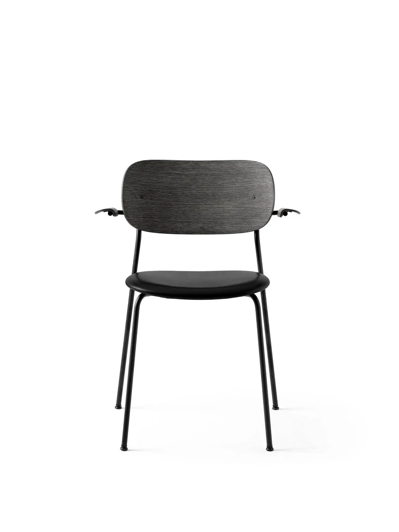 The chair is distinguished by a wide veneer back, whose proportions allow freedom of movement and provide maximum comfort. Comfort also led the design of the backrest, which is positioned and angled for exceptional support. The Co Chair’s slender yet robust powder-coated steel frame defines the intriguing geometric silhouette †and delivers high durability. Optional veneer armrests adding another aesthetic and functional dimension, serving both for added comfort and for suspending the chair off the floor for easy cleaning.