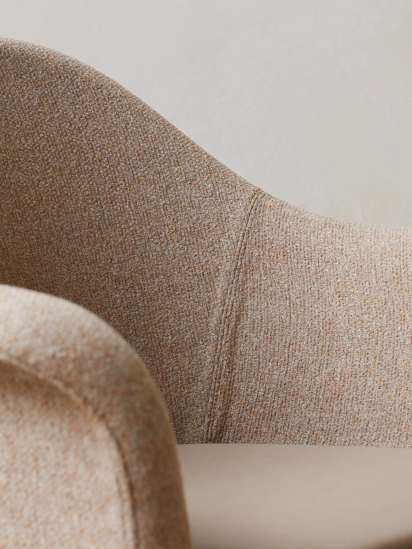 The new Harbour Lounge Chair has the minimalist expression as its predecessors. Resting on a solid wood frame, offered in natural, dark stained or black oak and walnut, its embracing shell is available upholstered in a range of tactile yet durable fabrics in contemporary colorways. The low-pitched frame features rounded legs and subtle joinery details, and the generous shell has a wide back, angled for comfort and supporting the body while providing space to relax. Ideal for relaxing into after a long day, it features the collection’s characteristic curving armrests and a luxuriously over sized seat complete with a corresponding cushion.