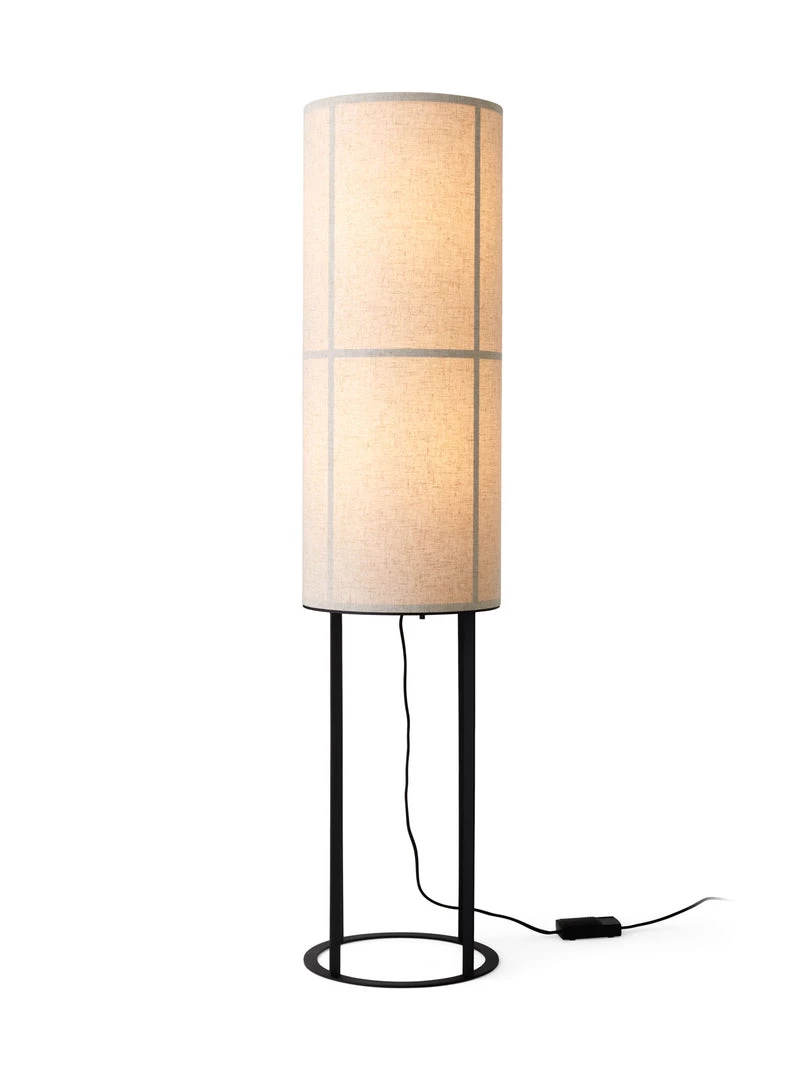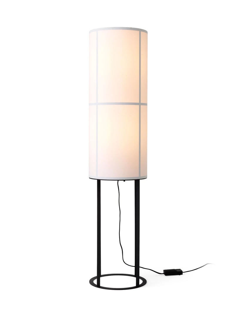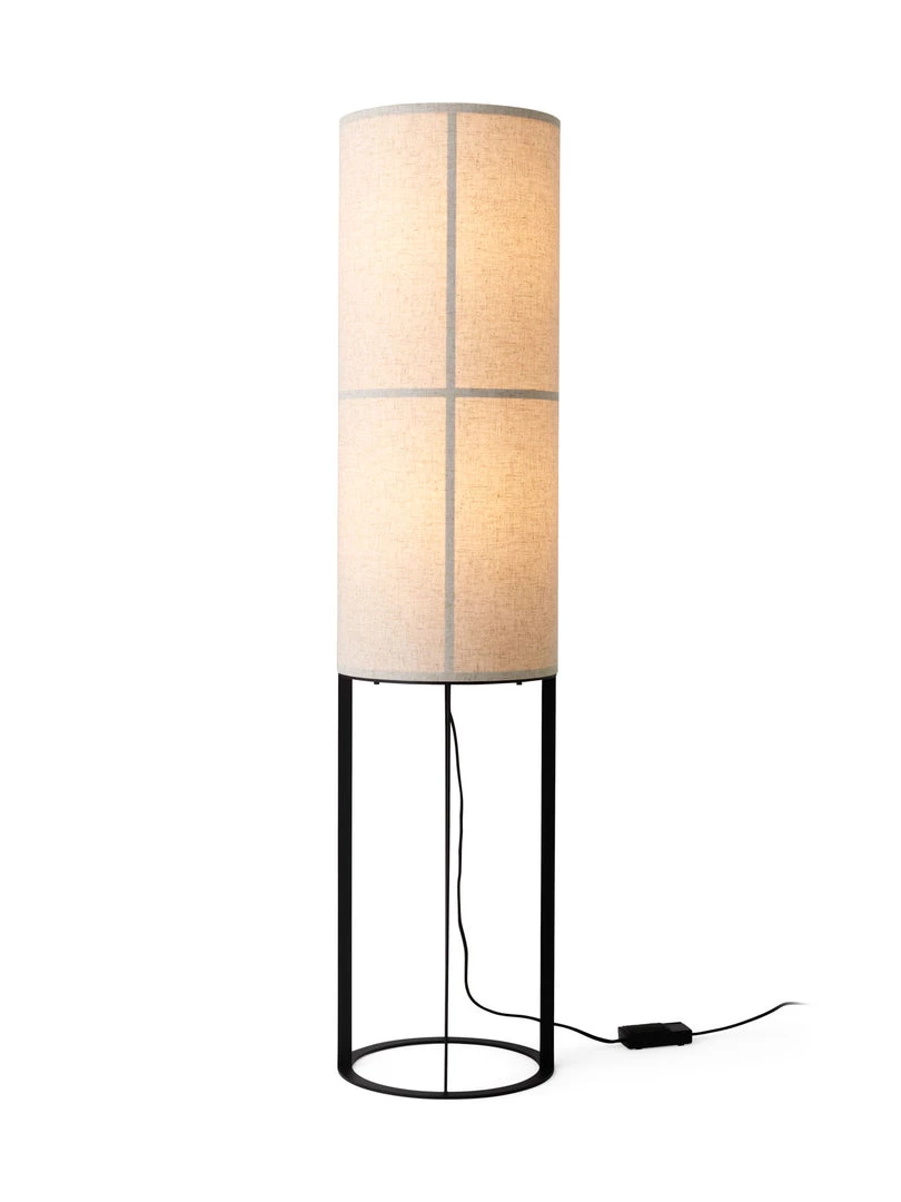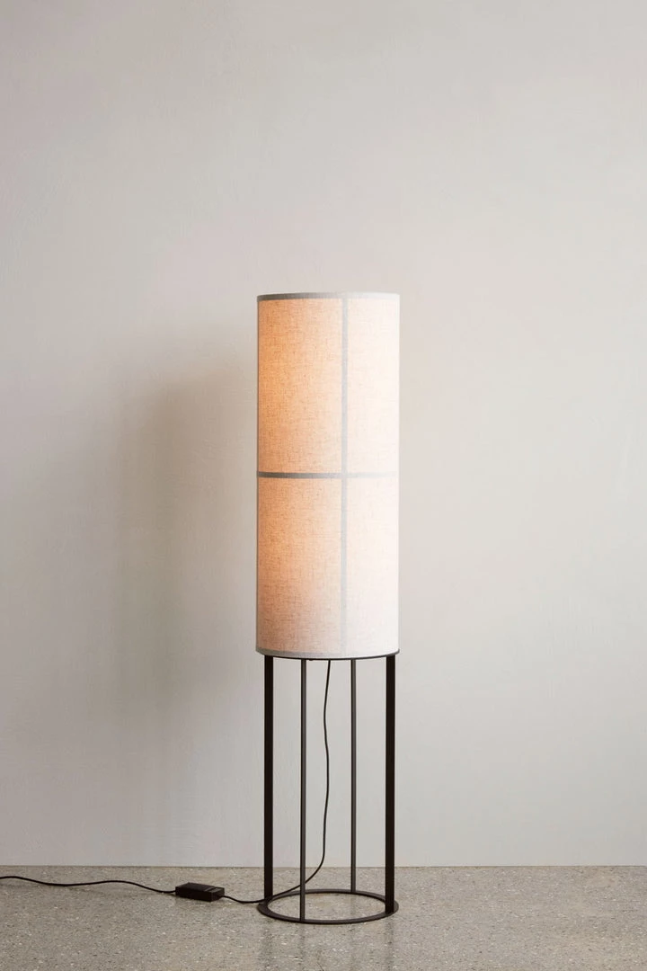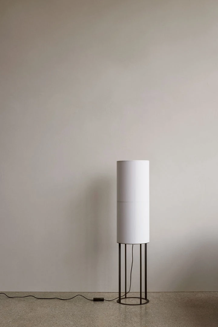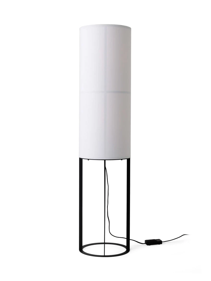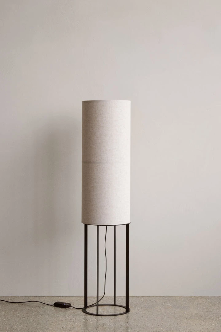 Set on an elegant powder-coated steel foot for an elevated and airy expression, the Japanese-inspired Hashira High Floor Lamp by Norm Architects illuminates spaces with soft light, elegantly diffused through its tactile fabric shade.