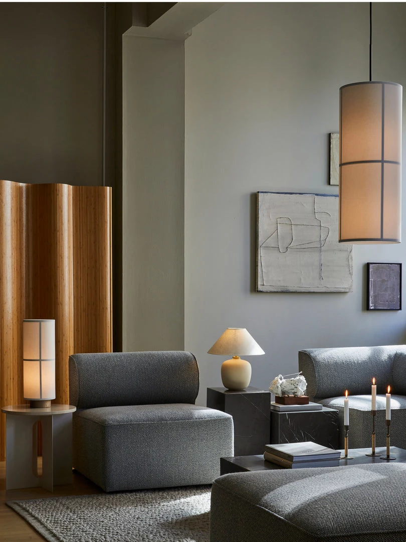 Spreading ambient light in a room, the Hashira Collection makes for purposeful lighting above a dining table, in a reception area or on a table in a hotel bedroom, bringing a sense of understated luxury and purpose to interior spaces.”, Norm Architects
