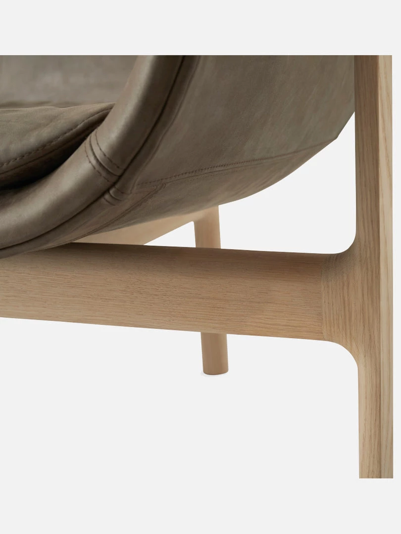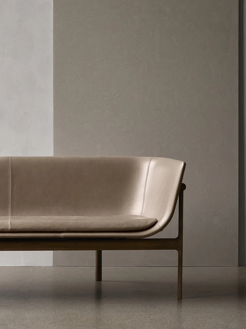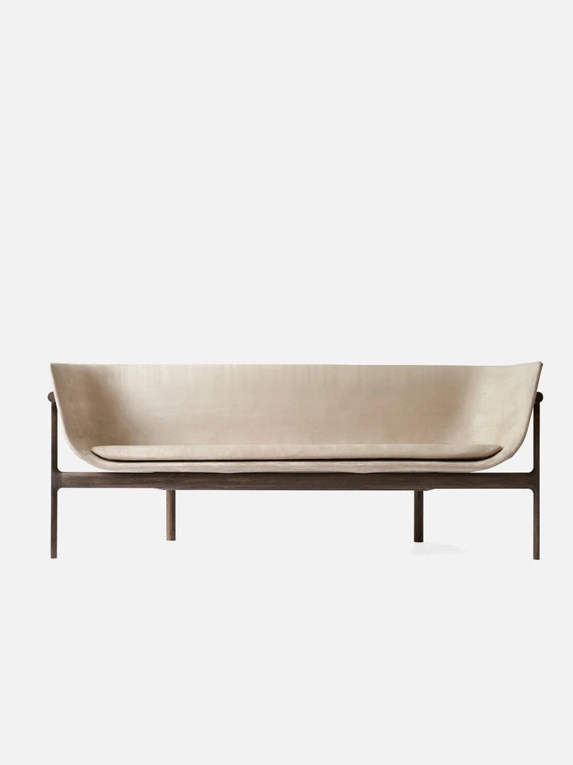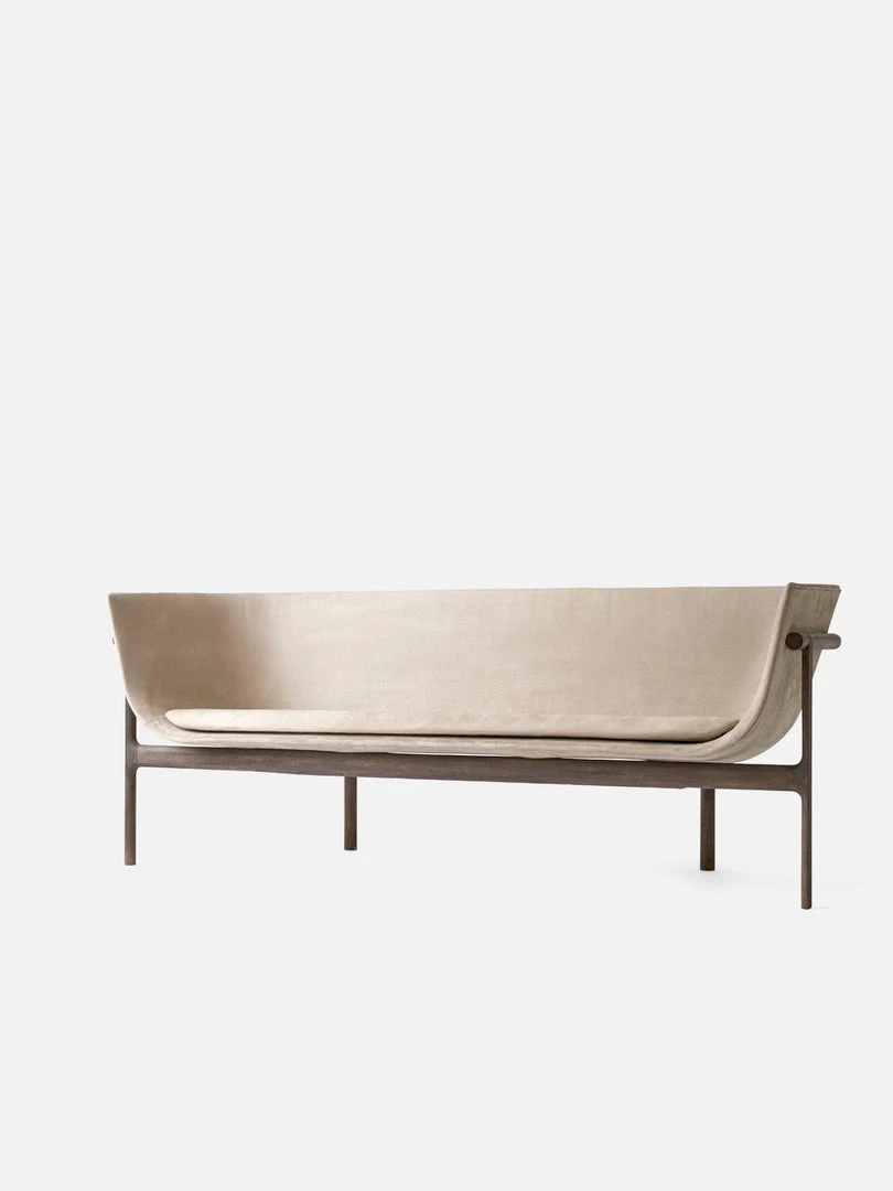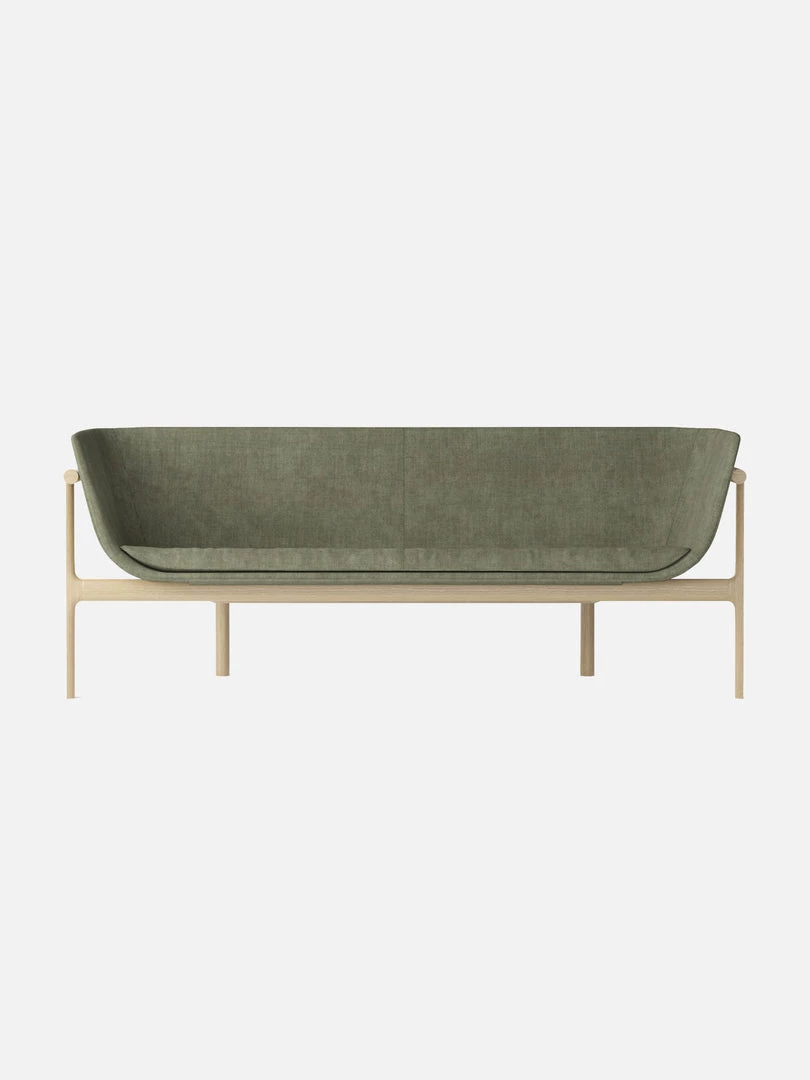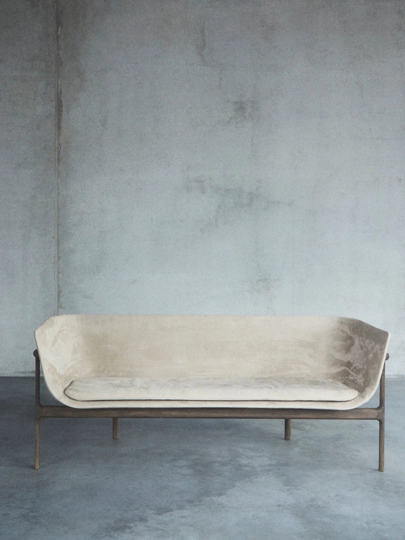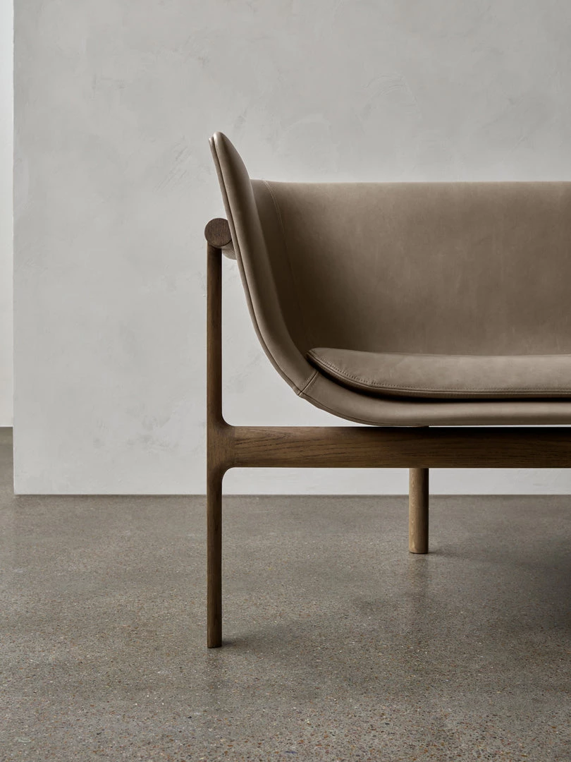 Portuguese designer Rui Alves was inspired to create The Tailor Sofa by the memory of his grandfather’s favorite tailor shop. An image of the tailors bent over work tables and of old wooden hangers holding grey suits has stayed with Rui. Like that tailor shop, he has designed the Tailor Sofa to be authentic, with everything on display: I wanted to show all of it, the structure, the beautiful oak wood. Nothing should be hidden, as is normally done in sofa design. The sofa is meant to be seen from all sides.”. It is especially beautiful from behind. The sofa has a light and airy appearance, the structured upholstered part supported by the wooden frame for a comfortable and practical sofa for everyday use.