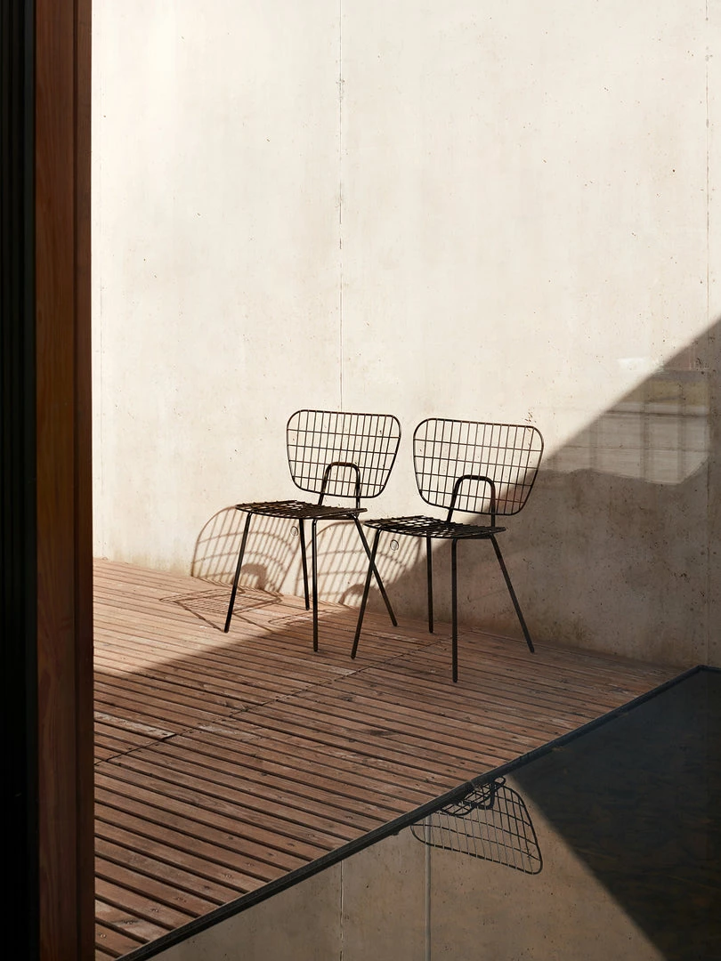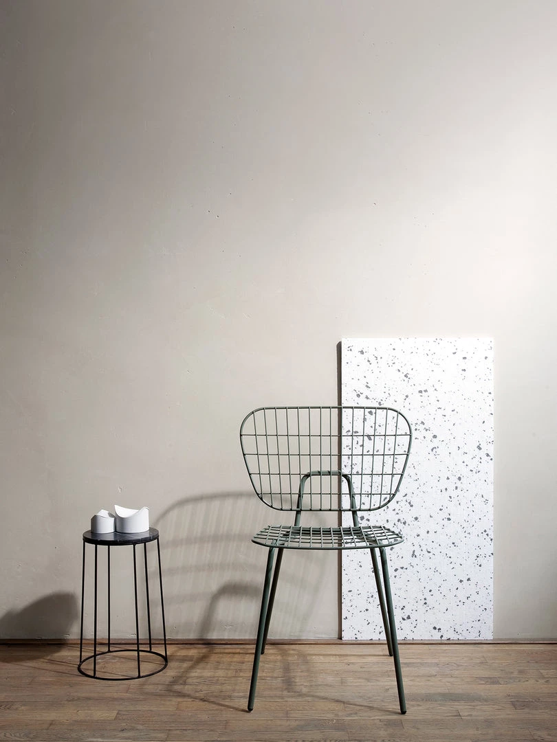Guided by all senses, their mission is to create seemingly simple designs that reflect the love that is put into them – and their details – for years to come. Their Wire design is available as a Dining chair and a low Lounge Chair. They both have the same light and airy appearance and the thin structure of the wire frame gives them a delicate feel, while also providing a fine contrast to any cushion you put on the dining chair – or the blankets, pillows and soft items you lay in the lounge version.
